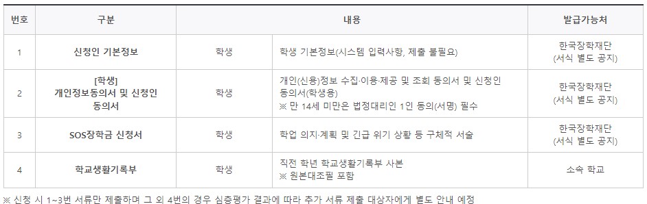 단. SOS장학금 유형은 저소득층 유무와 관계없이 긴급구난 대상에 지원