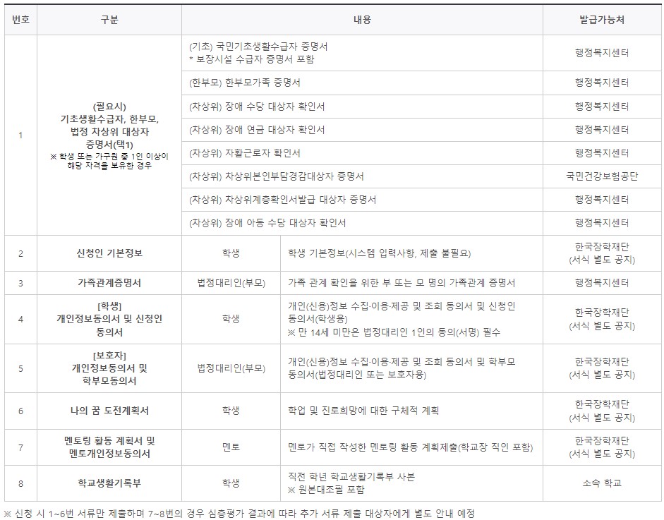 - 추천일 기준 국민기초생활수급자, 한 부모가족지원대상자, 법정 차상위 계층 가정의 학생